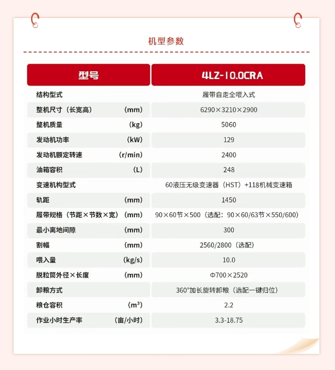 強度更高,更適應收割1.2m以上高桿、高產、雜交稻作物。